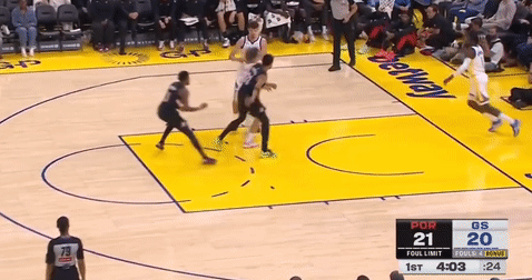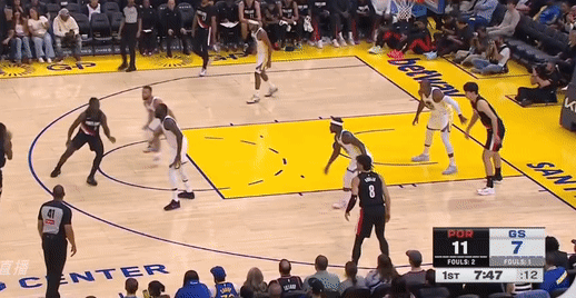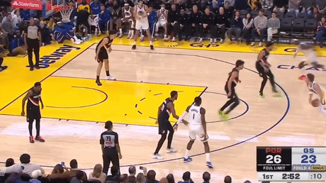 第一节勇士斯蒂芬-库里拿下7分,开拓者卡马拉拿下12分,首节战罢勇士25-39落后开拓者