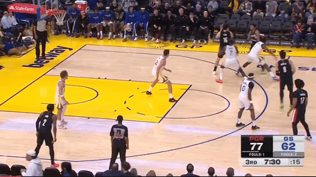 第三节勇士希尔德拿下6分,开拓者韦斯利拿下6分,第三节结束勇士78-97落后开拓者